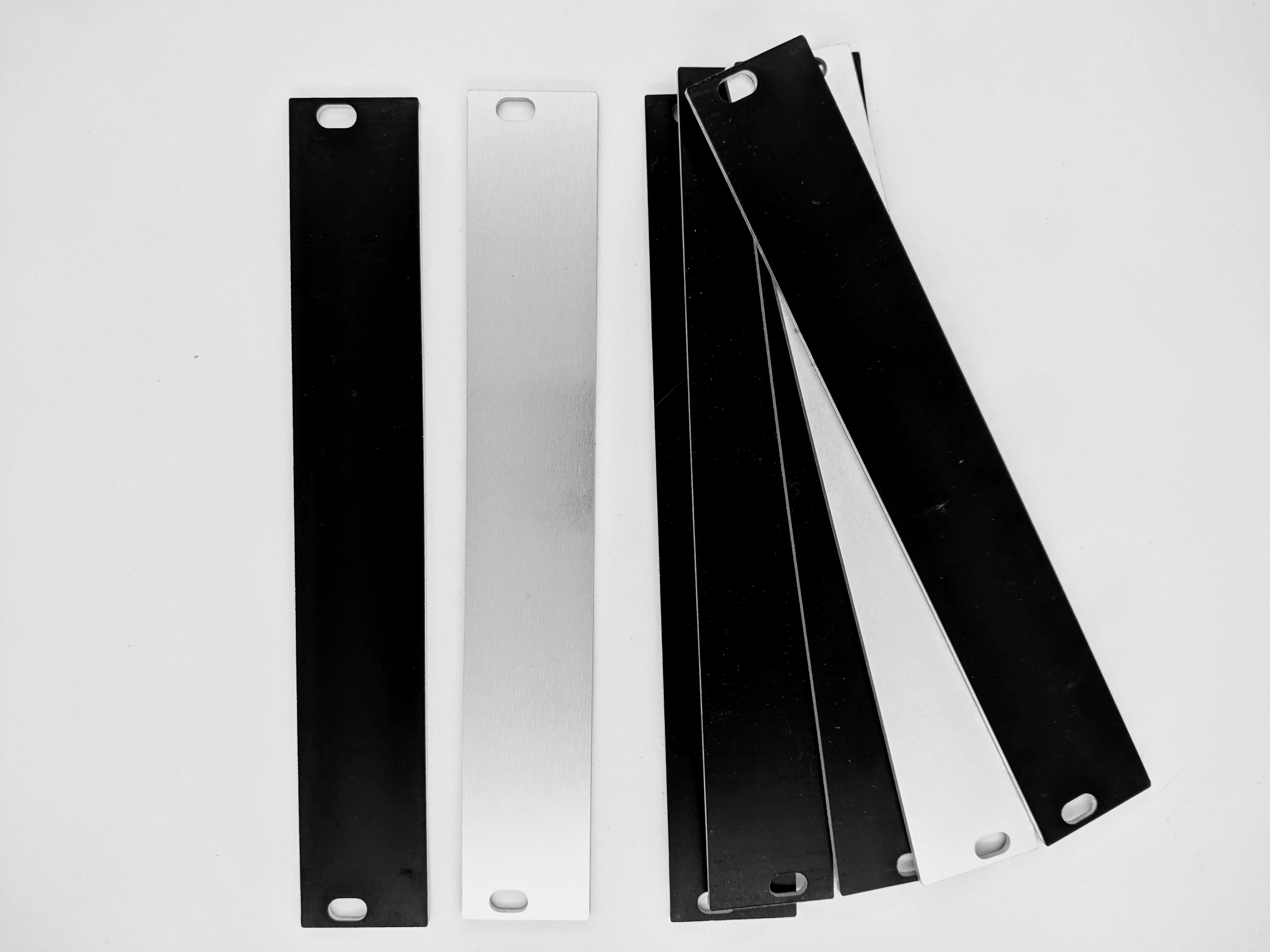 You can use these either side of these blanking plates. PCB's are made of aluminium and signle sided, black matt colour and brushed aluminium on the other. Blanking plates for your Microcomputer, Eurorack project or just blank those pesky holes in your favourite synth ᕕ(⌐■_■)ᕗ ♪♬