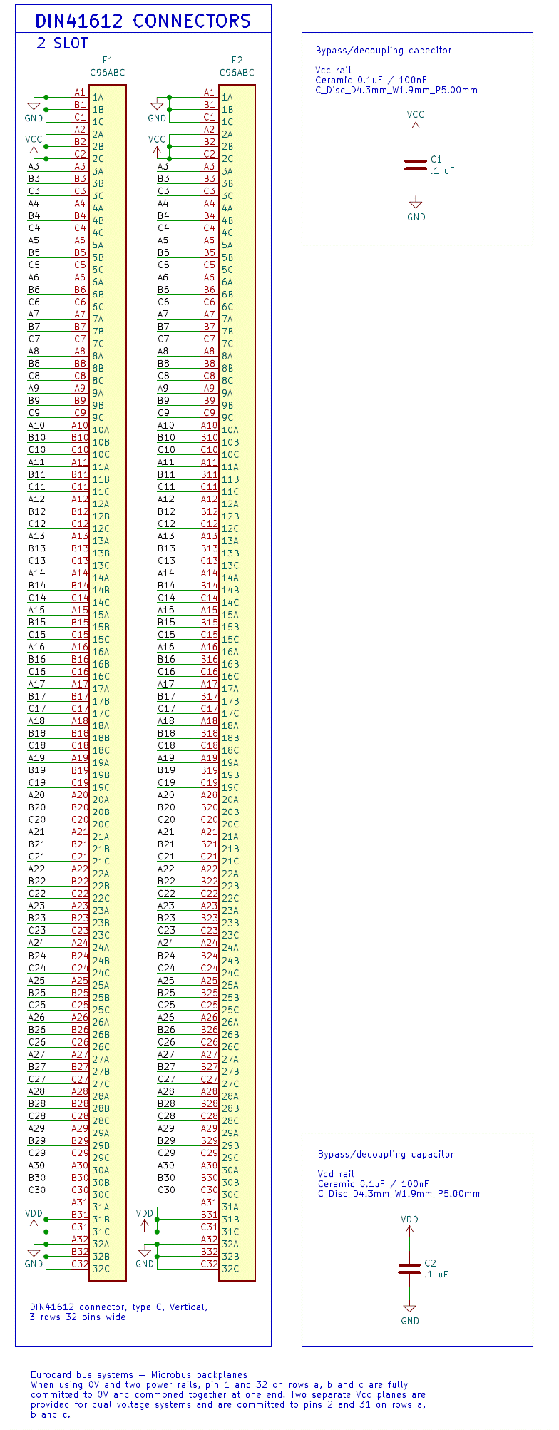 | Connector | E1,E2 | DIN41612 connector, type C, Vertical, 3 rows 32 pins wide | 2 | DIN41612_C_3x32_Female_Vertical_THT |