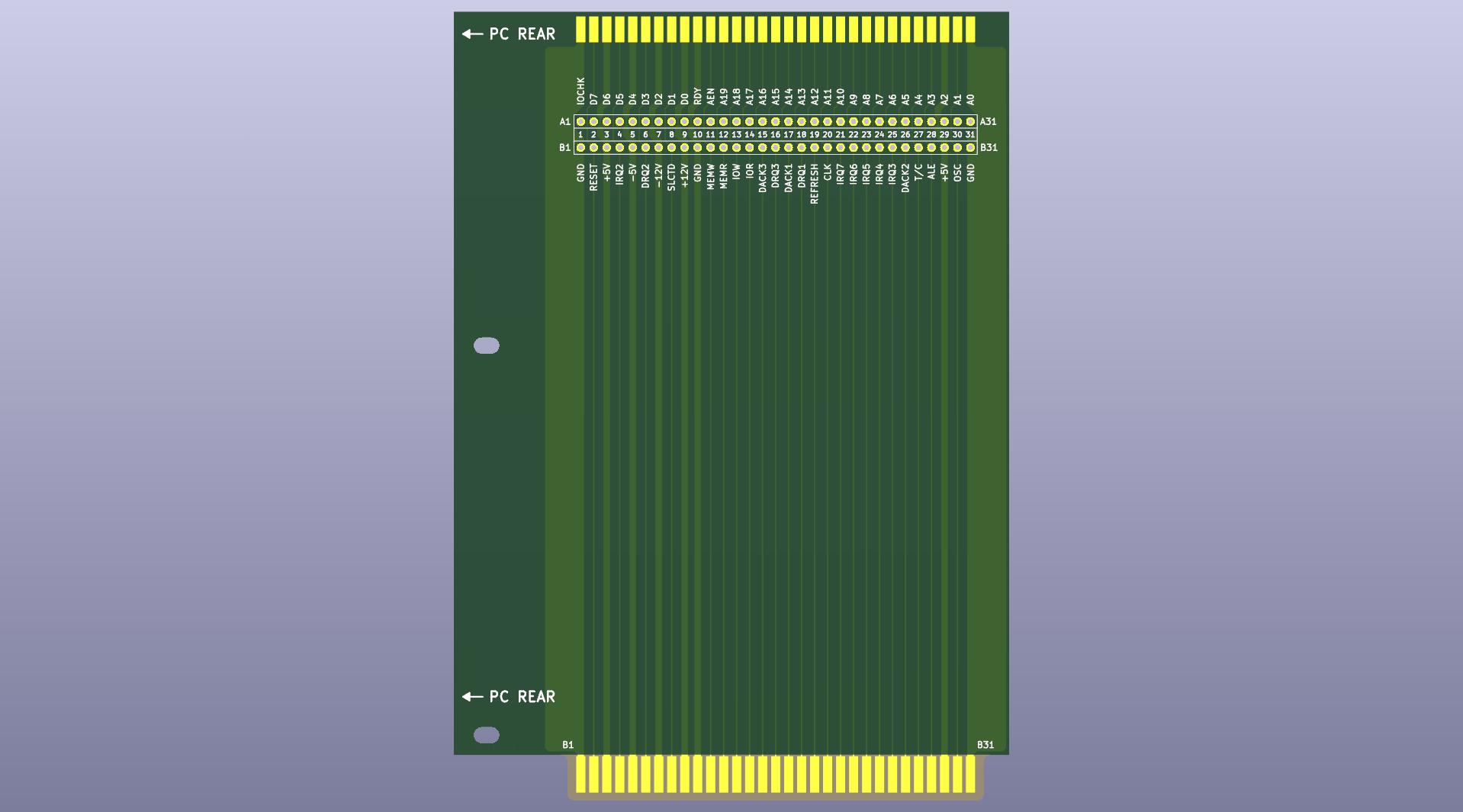 Board Connector / Footprint: 62pin 2x31pin ISA Bus connector with 45° chamfered edge, 2x31pin PCB edge card connector