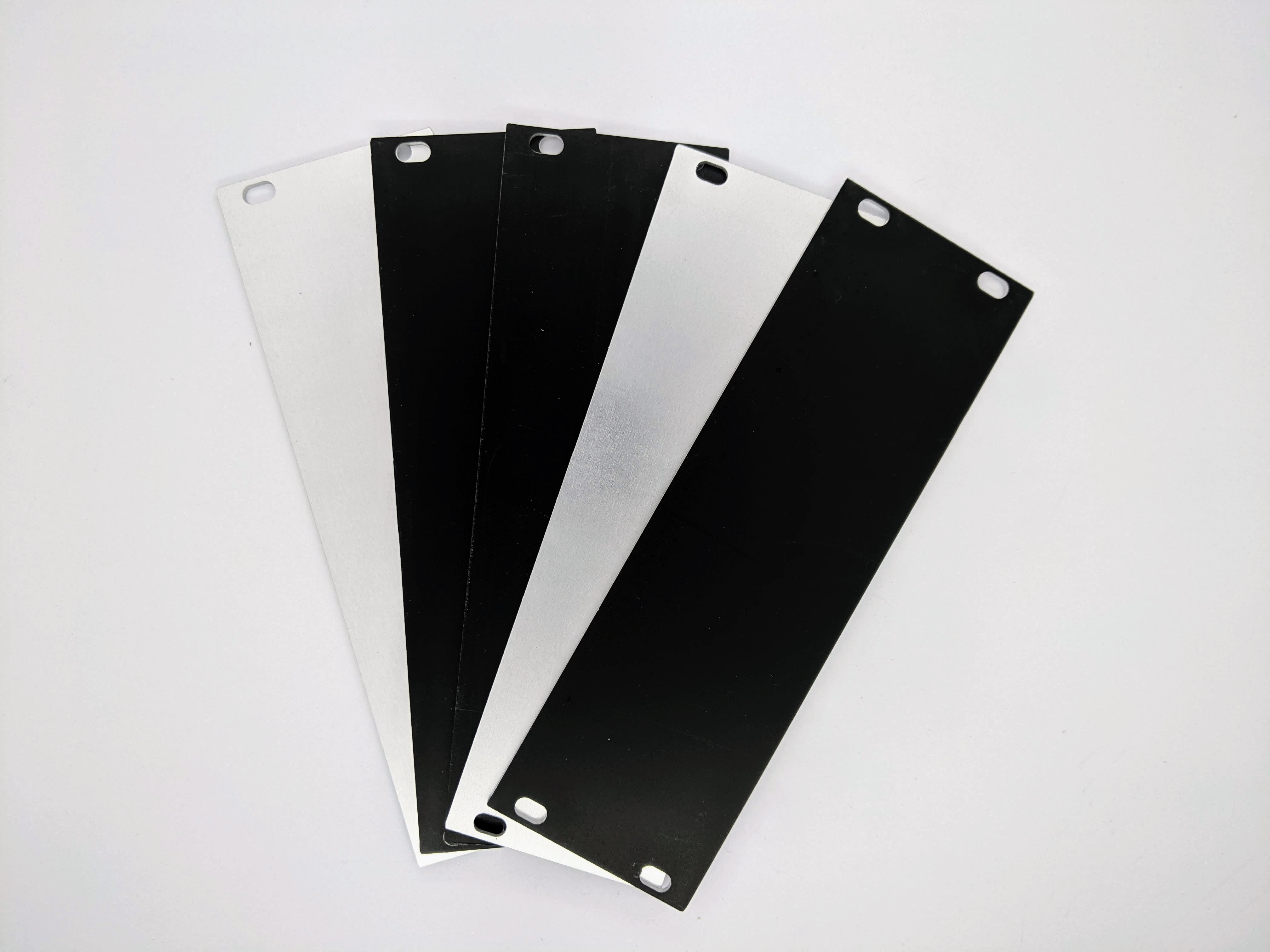 You can use these either side of these blanking plates. PCB's are made of aluminium and signle sided, black matt colour and brushed aluminium on the other. Blanking plates for your Microcomputer, Eurorack project or just blank those pesky holes in your favourite synth ᕕ(⌐■_■)ᕗ ♪♬
