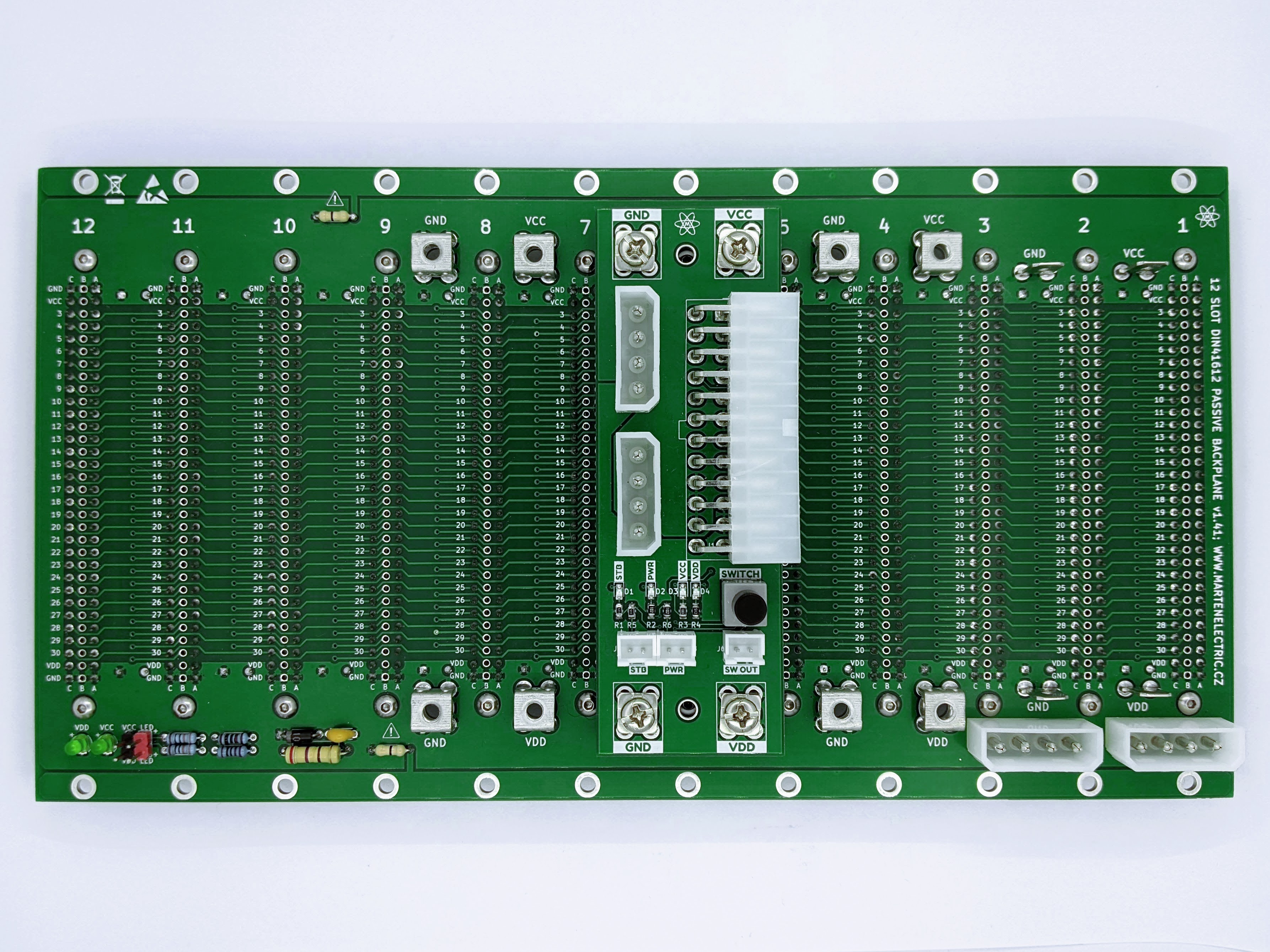 Backplane PCB has been designed to be very flexible and can be used with large variety of industry standard power and signal connections: