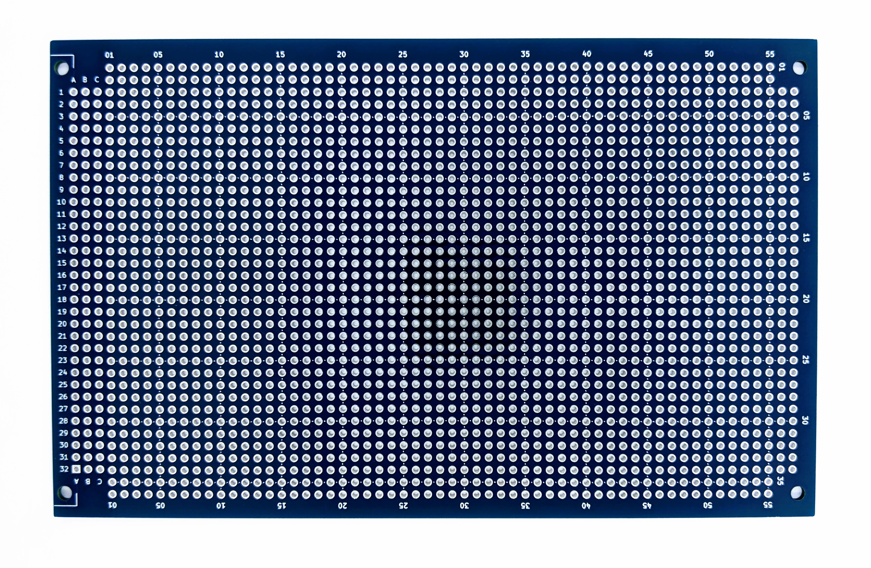 Hole matrix: 57 x 36 holes, Prototyping 2101 holes + 96 holes for DIN connector (2197 holes in total)