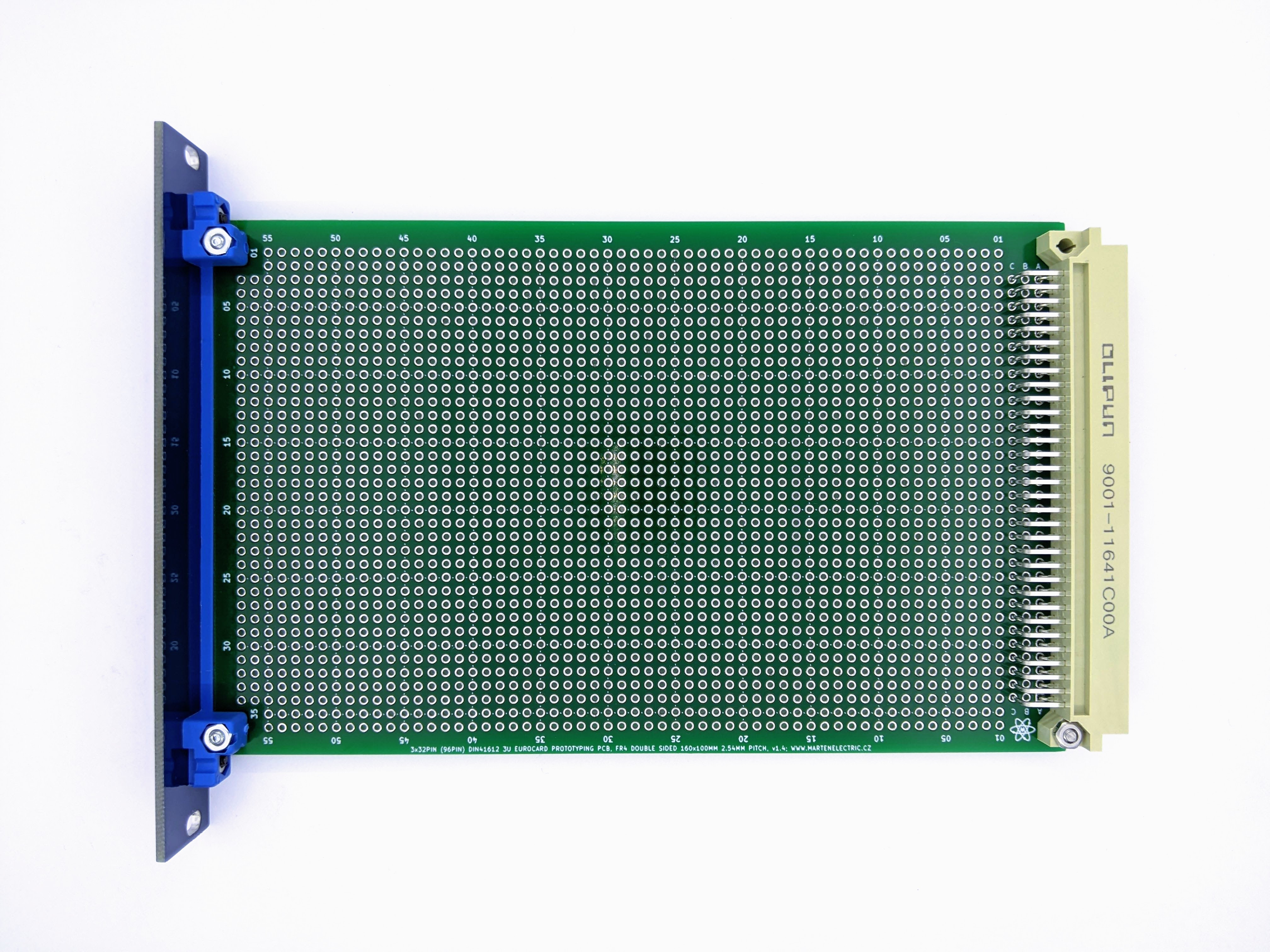 Eurocards system in generally is enormously versatile for all kinds of projects thanks to standardized mechanical dimensions and quality connectors. Eurocards PCB's come in many sizes (wikipedia article). This is single height most common size 3U single height x 160mm card. I have also designed 3U Prototyping board PCB card 220 x 100mm if you require bigger prototype card. You can use these card in industry standard DIN subrack or Eurorack. Card will fit nicely in PCB guide rails with front panel Eurorack if you wish to use one.